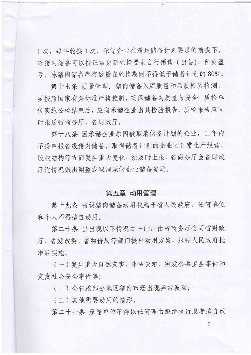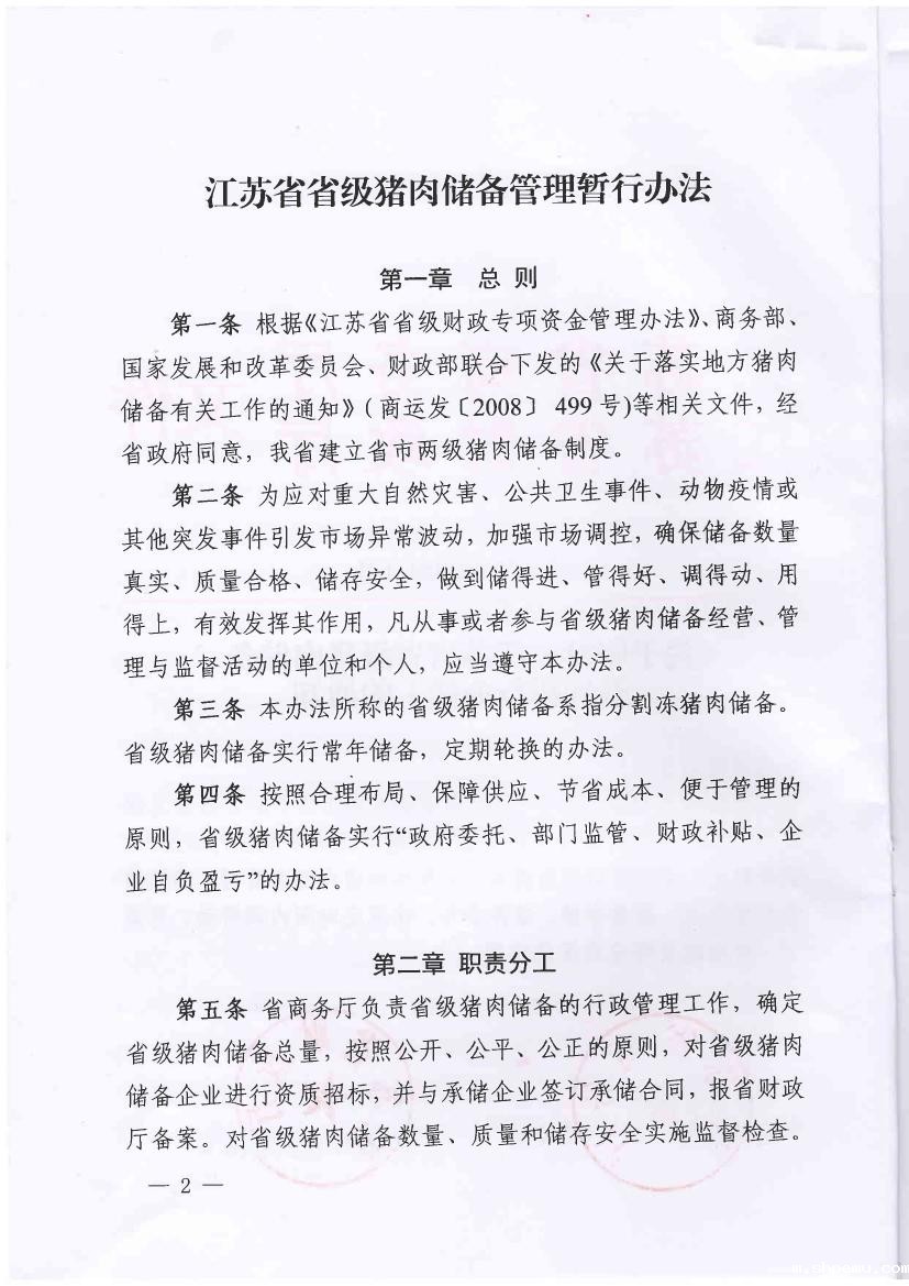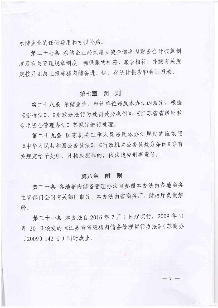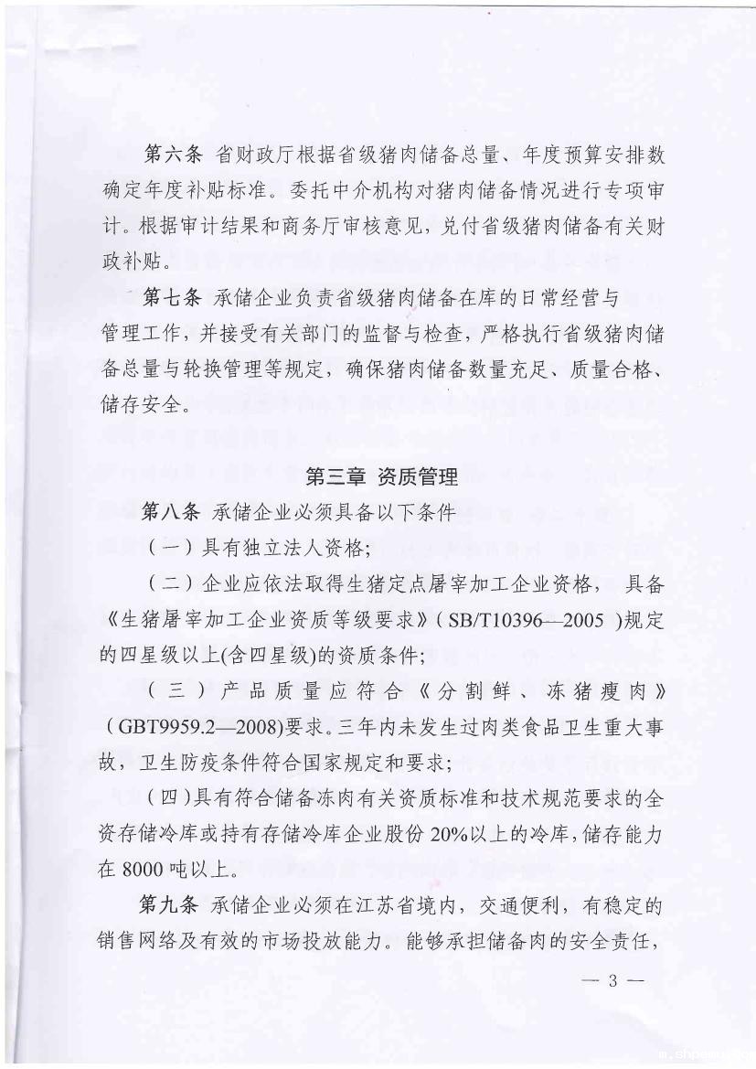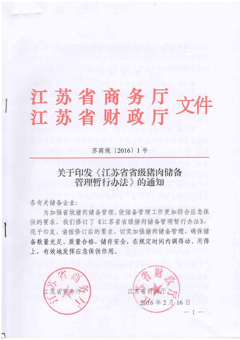 关于印发《江苏省省级猪肉储备管理暂行办法》的通知