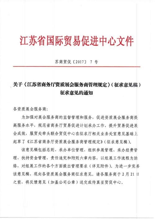 关于《星空国际彩票平台app资质展会服务商管理规定》(征求意见稿)征求意见的通知