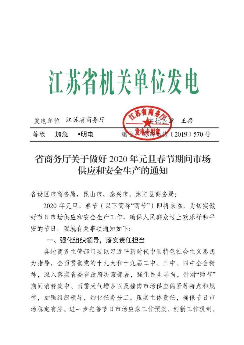 省商务厅关于做好2020年元旦春节期间市场供应和安全生产的通知