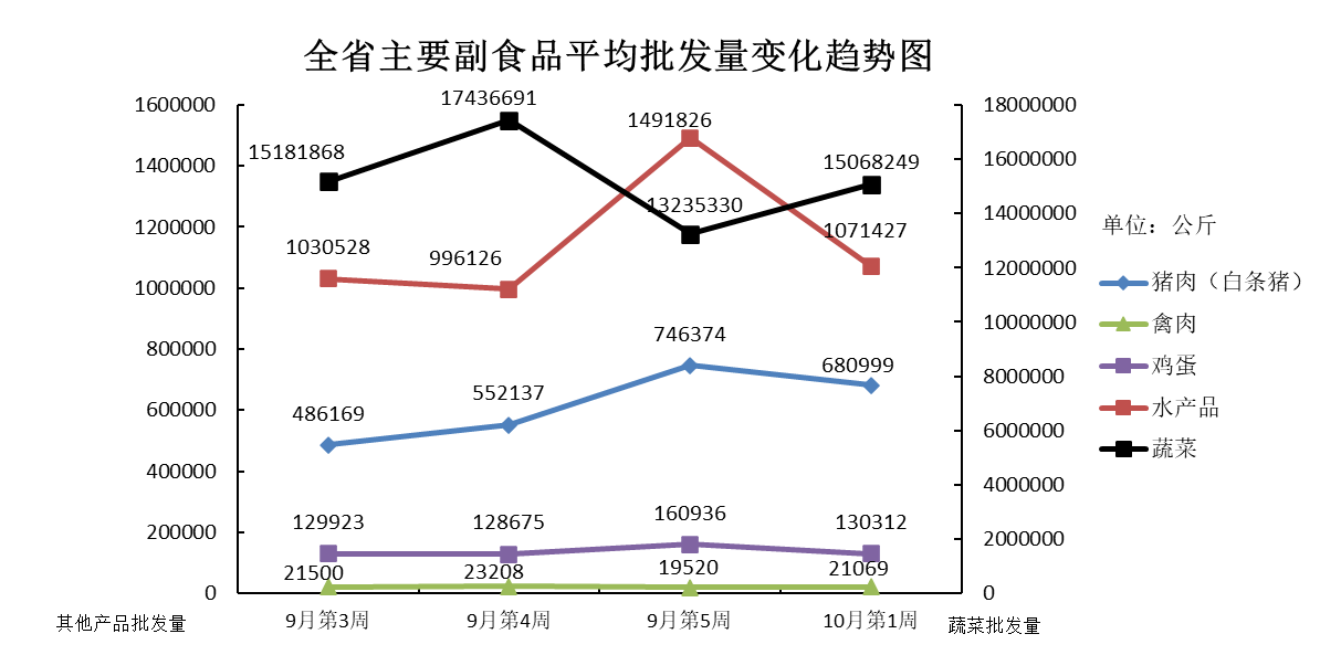 根据全省生活必需品监测系统, 本周数据报告日(10月8日):