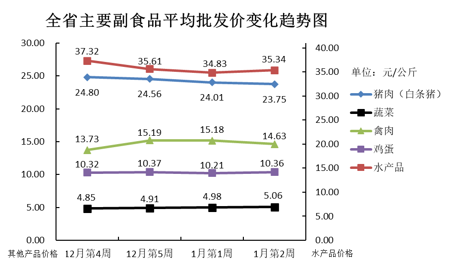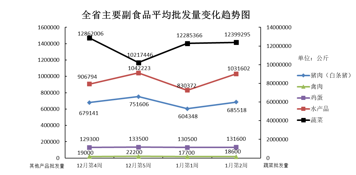 根据全省生活必需品监测系统, 本周数据报告日(1月14日):