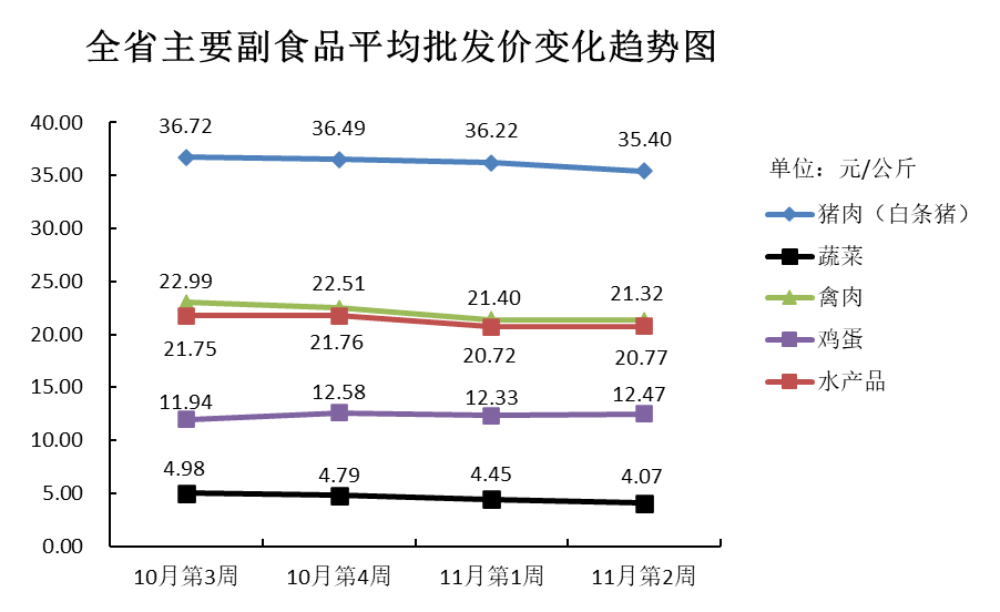 根据全省生活必需品监测系统, 本周数据报告日(11月11日):