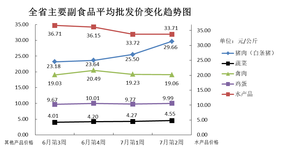 根据全省生活必需品监测系统, 本周数据报告日(7月8日):