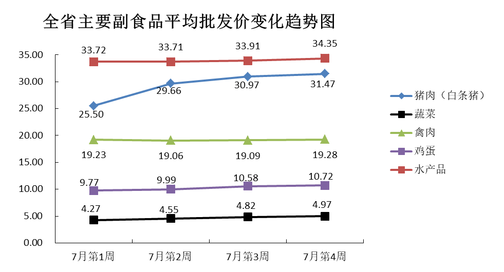 根据全省生活必需品监测系统, 本周数据报告日(7月22日):