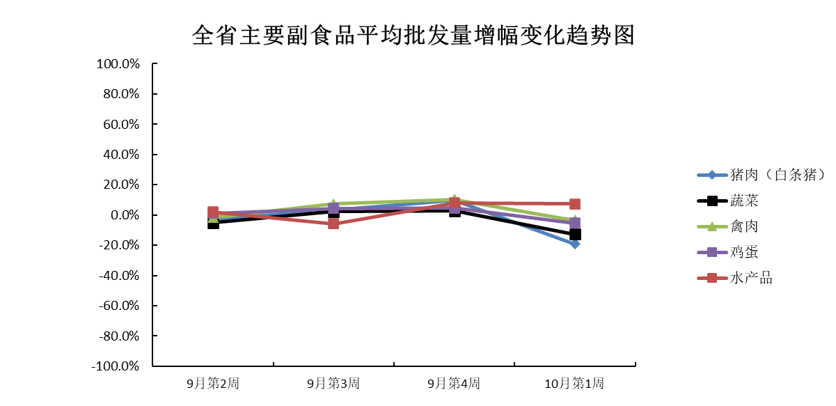根据全省生活必需品监测系统, 本周数据报告日(10月6日):