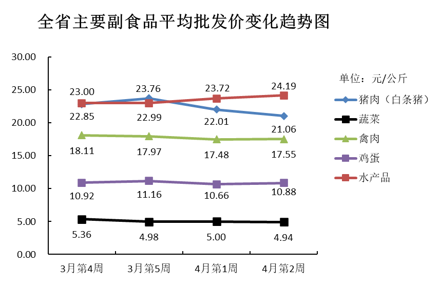 根据全省生活必需品监测系统, 本周数据报告日(4月14日):