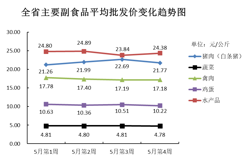 根据全省生活必需品监测系统, 本周数据报告日(5月26日):
