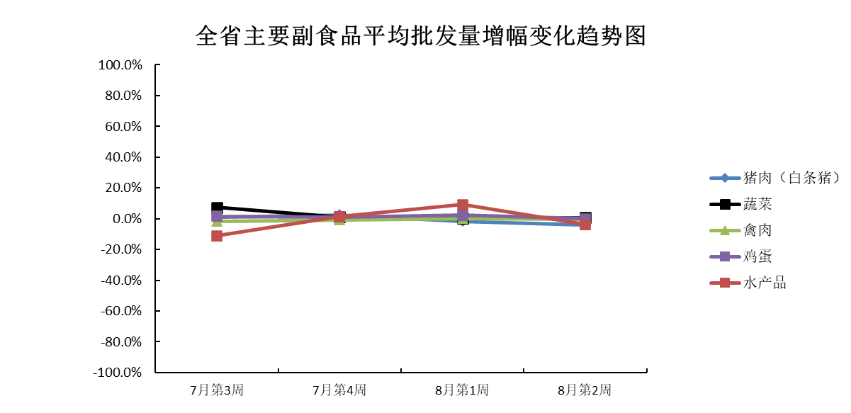 根据全省生活必需品监测系统, 本周数据报告日(8月11日):