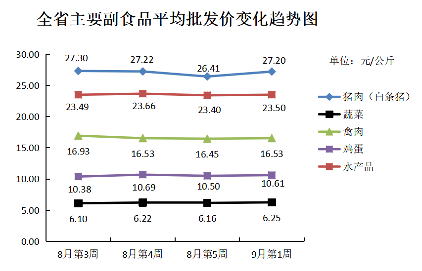 根据全省生活必需品监测系统, 本周数据报告日(9月6日):