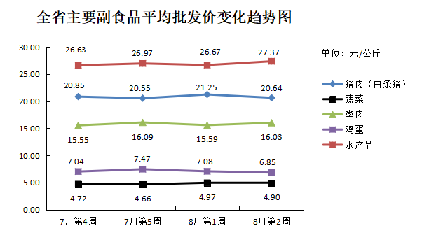 根据全省生活必需品监测系统,本周数据报告日(8月15日):