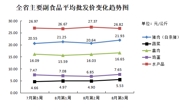 根据全省生活必需品监测系统,本周数据报告日(8月22日):